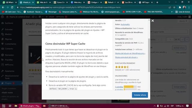 Instalacion de plugin cache WP super Cache para wordpress
