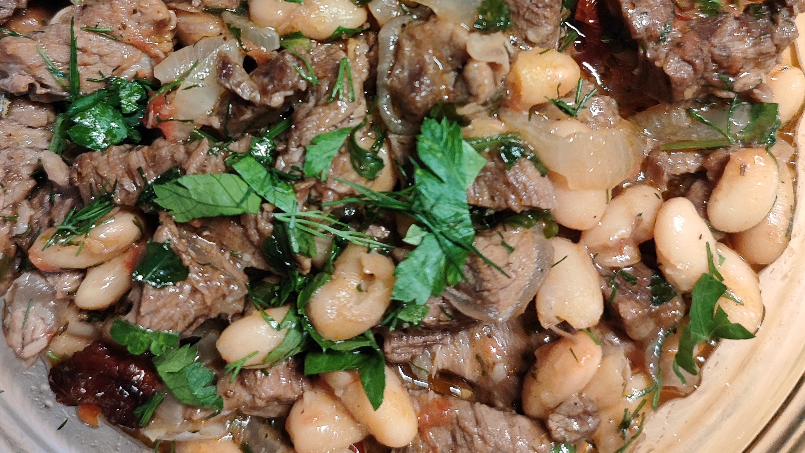 Отварная говядина с фасолью