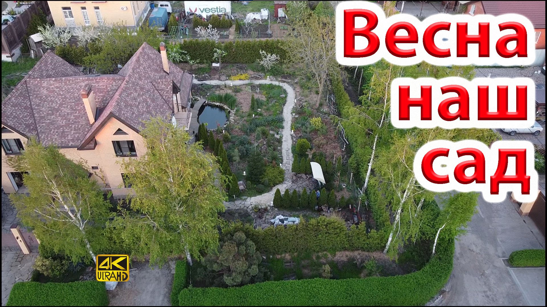 Весенний сад, ландшафтные работы по декору сада и пруда у дома.