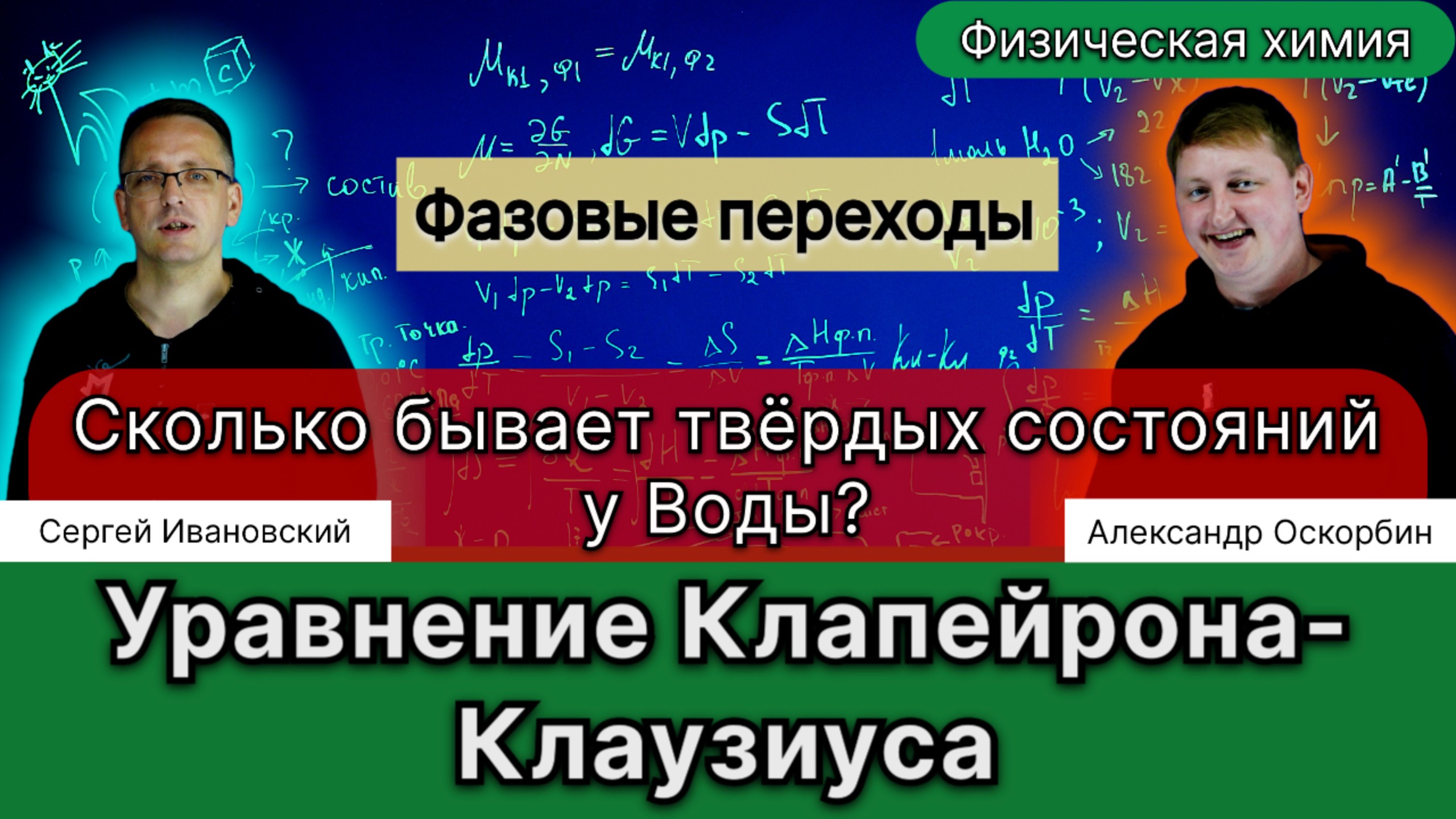 Канал «Научная Тематика»! Поддержать канал Донатом🧧💰👇. Перевод на карту: Сбер: 4817 7601 3927 9347 Т-банк: 2200 7017 8811 7452 Сервисы раннего доступа, смотри видео раньше и поддержи канал: Подписка на Boosty • https://boosty.to/ivanovskiy/donate Подписка на VK_Donut • https://vk.com/donut/ivanovskiysergey Канал в соцсетях👇 Телеграм • https://t.me/ivanovskiysergey ВК • https://vk.com/ivanovskiysergey Дзен • https://dzen.ru/ivanovskiysergey Rutube •https://rutube.ru/video/person/30197834 ------------------------------------------------------------------------------- Описание лекции: В начале лекции даётся определение фазового равновесия и рассматривается работа с однокомпонентными системами. Обсуждается, как параметры состояния вещества (давление, объём, температура) связаны уравнением состояния и как эти уравнения могут быть использованы для определения состояния вещества. Далее объясняется, что получение уравнений состояния — сложная задача, и предлагается использовать графические отображения этих уравнений. Вводится понятие диаграммы состояния, которая строится на основе экспериментальных данных. Затем рассматривается, как строятся диаграммы состояния для однокомпонентных систем. Объясняется, что на таких диаграммах отображаются области существования вещества в различных агрегатных состояниях (твёрдом, жидком, газообразном) и линии фазовых переходов между этими состояниями. Далее обсуждаются различные виды фазовых переходов (кипение, конденсация, возгонка, сублимация, плавление, кристаллизация) и их характеристики. Вводится уравнение Клапейрона-Клаузиуса, которое связывает термодинамические характеристики фазовых переходов. После этого рассматривается уравнение Клапейрона-Клаузиуса в интегральной форме для параметров, связывающих две разные точки фазового перехода. Объясняется, как с помощью этого уравнения можно определить давление и температуру фазового перехода при различных условиях. Далее рассматривается построение графика в координатах логарифм давления и обратная температура. Показывается, что тангенс угла наклона этой линии равен коэффициенту, который связан с энтальпией фазового перехода. Затем рассматривается применение уравнения Клапейрона-Клаузиуса для определения средней энтальпии фазового перехода в диапазоне температур. Далее рассматривается фазовое равновесие между твёрдым веществом и паром, а также между жидкостью и паром. Показывается, что эти равновесия могут быть описаны уравнениями, аналогичными уравнению Клапейрона-Клаузиуса. Затем рассматривается тройная точка, в которой сосуществуют три разных состояния системы. Объясняется, что тройные точки являются отправными точками для построения шкалы температур. В конце лекции рассматривается применение уравнения Клапейрона-Клаузиуса в технологических процессах, таких как стерилизация медицинских инструментов и использование воды в качестве теплоносителя. Ключевые слова и термины: Фазовое равновесие. Однокомпонентные системы. Уравнение состояния. Диаграмма состояния. Фазовый переход. Агрегатное состояние. Кипение. Конденсация. Возгонка. Уравнение Клапейрона-Клаузиуса. Ключевые вопросы для самопроверки: Что такое фазовое равновесие? Как связаны параметры состояния вещества уравнением состояния? Как строятся диаграммы состояния для однокомпонентных систем? Какие виды фазовых переходов существуют? Как уравнение Клапейрона-Клаузиуса связывает термодинамические
