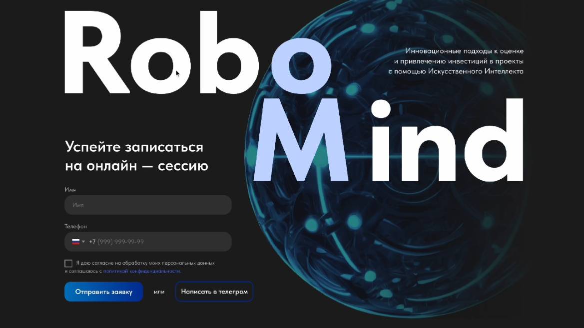 Лендинг на Robomind. Уникальный экспертный сервис для инвесторов и владельцев проектов.