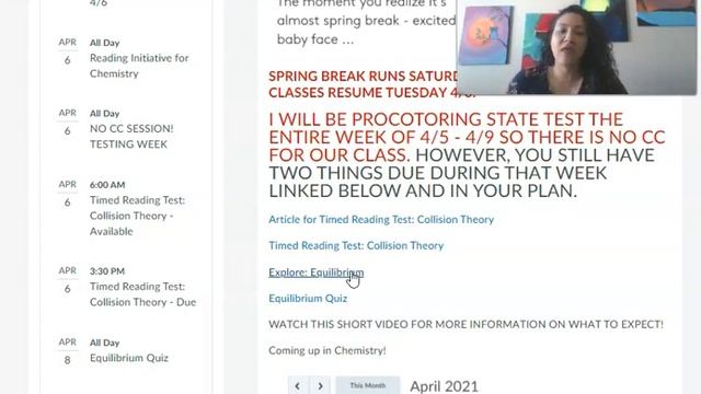 Expectations for the week we have no classes 4/6 - 4/9.