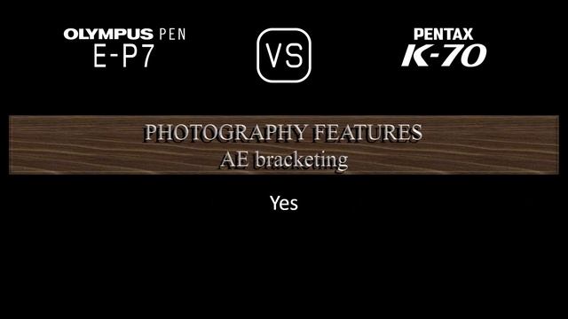 This video overviews the Olympus PEN E-P7 and the Pentax K70 in a parallel comparison of specifications. Thanks for watching. If you liked this video and found it informative, make sure to subscribe for more. 00:24 LAUNCH 00:32 BODY 00:41 SENSOR 01:05 IMAGE 01:21 OPTICS & FOCUS 01:50 SCREEN 02:10 VIEWFINDER 02:22 PHOTOGRAPHY FEATURES 03:23 VIDEOGRAPHY FEATURES 03:39 STORAGE 03:43 CONNECTIVITY 04:12 PHYSICAL 04:32 MISC