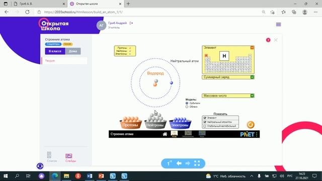 Симулятор в Открытой школе. Строение атома