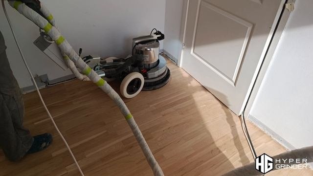 Итак, результат налицо: всю комнату мы сделали за 14 минут «грязного» времени. Я, честно, думал, что уложимся минут в 10, но мы еще пару минут потратили на перестановки. Важный момент: на грубом абразиве обработка всегда занимает чуть больше времени, длина прохода немного увеличивается. Но даже так — 14 минут на комнату в 10 м² — это отличный показатель! Теперь давайте на чистоту: если у нас комната 20 м², то мы управимся за полдня. И это в самом худшем состоянии пола! К обеду она уже будет готова под шпаклевку. А если речь о свежем паркете или качественной инженерной доске, то полноценную реставрацию делаем буквально за пару часов. Я не просто так утверждаю, что по скорости эта техника оставляет позади практически любого паркетчика с классическим оборудованием. Сравнимый объем работ с архаичной техникой просто невозможно выполнить так же быстро. Новая машина задает совершенно другой темп, и за ним уже не угнаться.